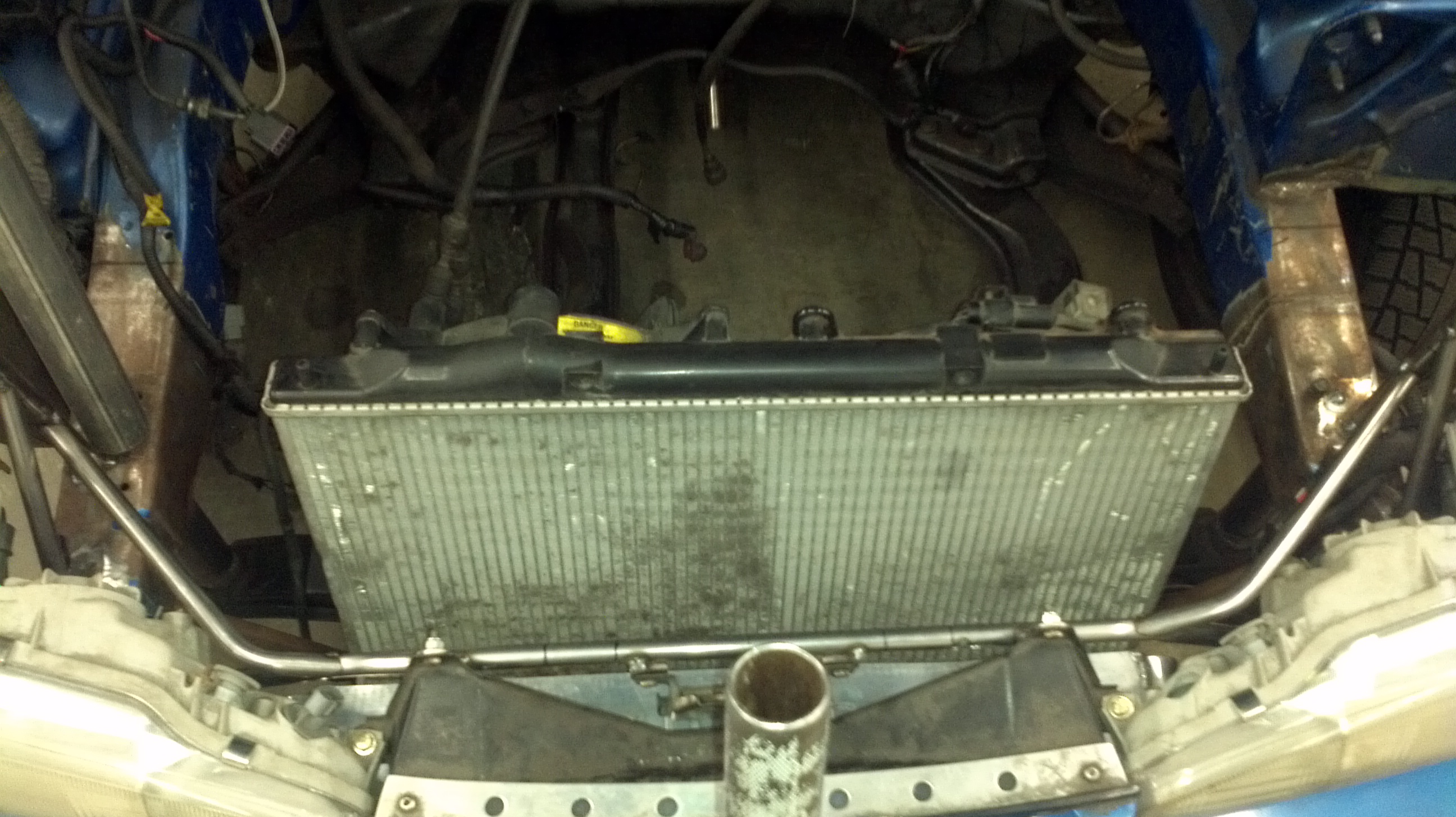 I'm not sure if it is or not. I bought the car from Kyle in a nut shell after he cut off the frame rails and all that fun stuff up front. I think it will maybe save a few lbs. But it will allow my to have more room for a bigger rad if I want and also a big big big trans cooler. The auto shall prevail!!!