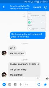 Originally he denied any wrong doing. Till I sent him a video of me with my stock hood installed, then had to install my carbonetics hood to prove it. (With out a break in the video btw and since facebook messanger only allows 1.5min. Of video before you have to edit let's just say that was a pain in the ass to finally get a hood swap done in 1.5min.. so he'd finally believe me.