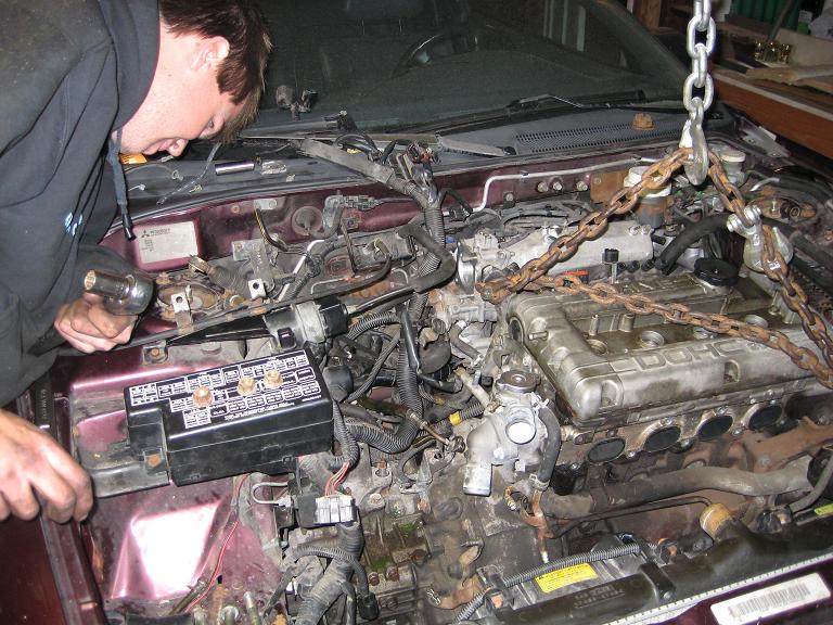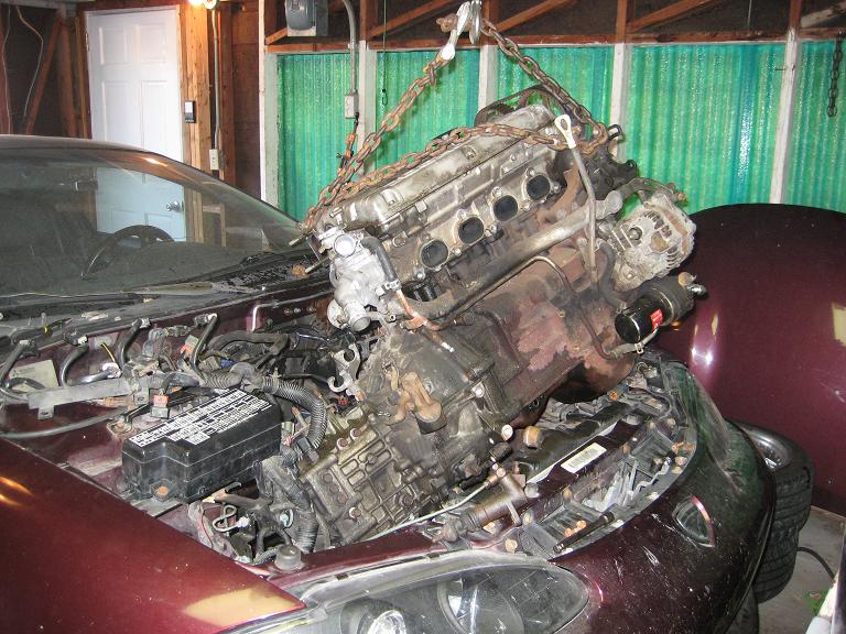 I got the motor out, transmission off, and the 2g starter plate off and ready to be put on the new motor. Also got the engine bay cleaned up a lot - one more wipe over and it should be ready to go.