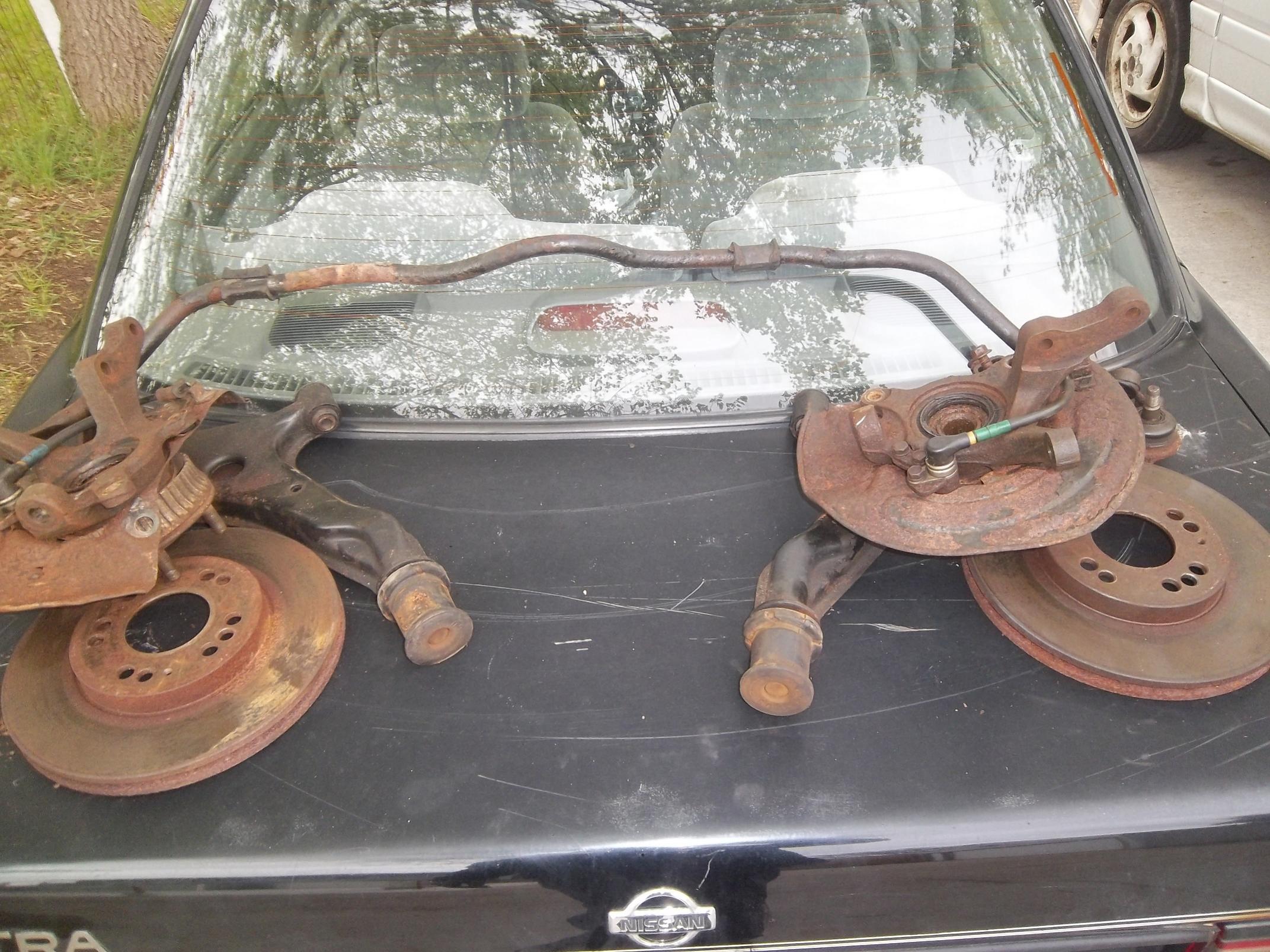I dont know how long this thing has been sitting, Ill be bringing these parts to work so I can resurface the rotors, press in new lower ball joints, and press in new front wheel bearings. The ball joints both had a lot of play, and the bearings felt very rough.