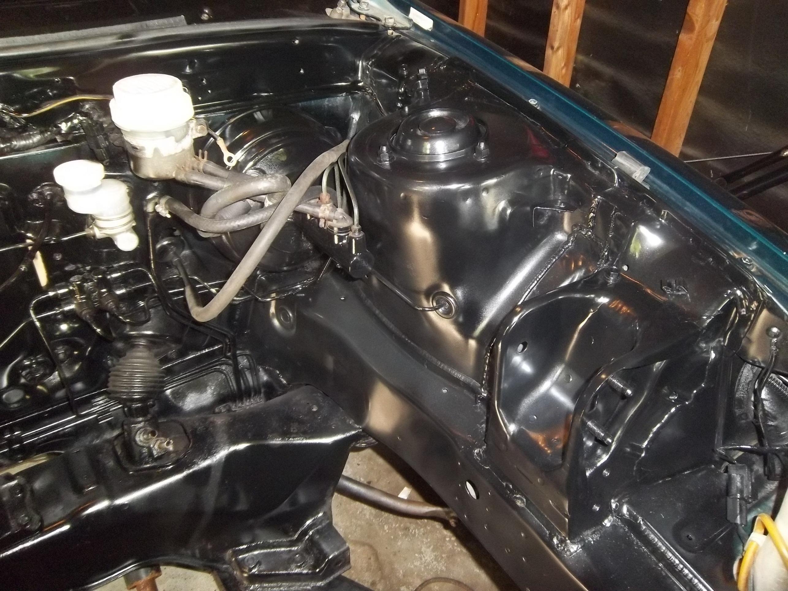 Fixed the rear motor mount, one of the bolts was broken off in the subframe. I also degreased and painted the engine bay. Im waiting for the clutch to show up from UPS. Then Ill get the motor/trans in. I also windo-welded all my mounts.