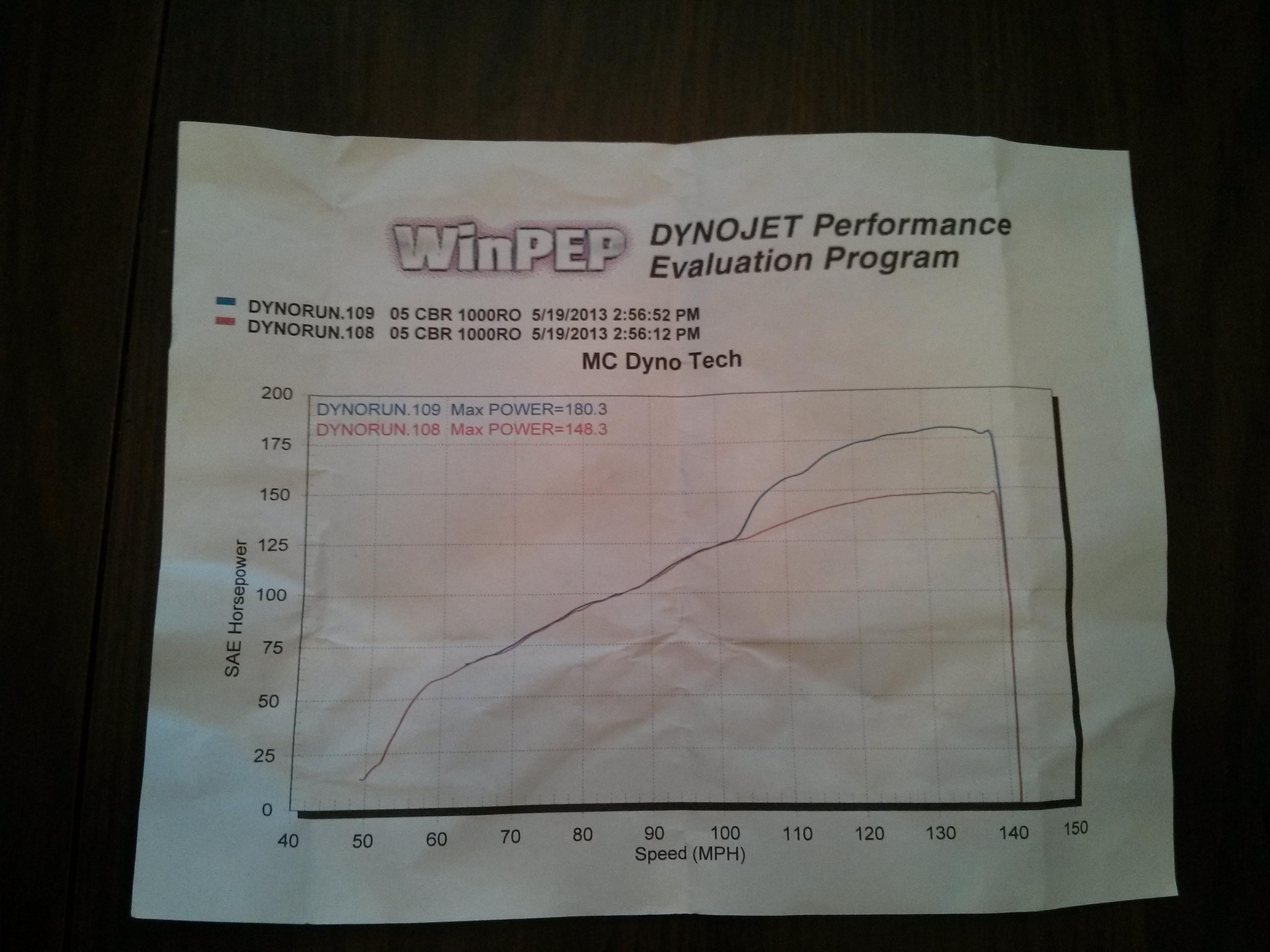 Well I got the bike on the dyno today after the rain stopped. I am very happy with the power it made. The bike made 148.3 HP on motor then on spray it made 180.3 HP. I do have a big jet to put in it but I think for now I will keep it like this. Bike feels real solid.