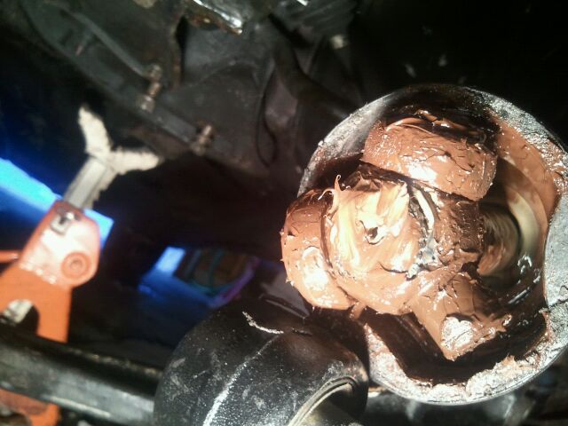 The u-joints are becoming worn, the front is ok, the middle is smooth as butter, but the rear is pretty notchy.