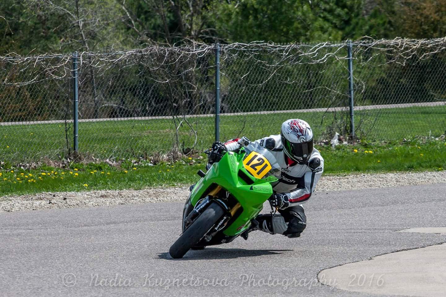 Bike suffered minor injuries. The crash was a result of getting a hell of a drive out of turn 13 and entering turn 1 at a speed higher than I ever have. I felt 3 bumps and then lost the front end. Tried to recover, but was unsuccessful and eventually the rear slid out, then bit, and I was tossed off.