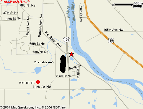Here's a map of the area. The star is the F&F Gas Station off 101. the Red Dot is my house, and the big black area is the field.
