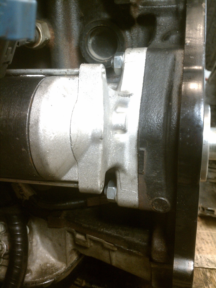 - Had two bolts welded into the adapter plate to act as studs for the starter. Drilled the start holes out. Worked out great. Thanks a million Kerry!