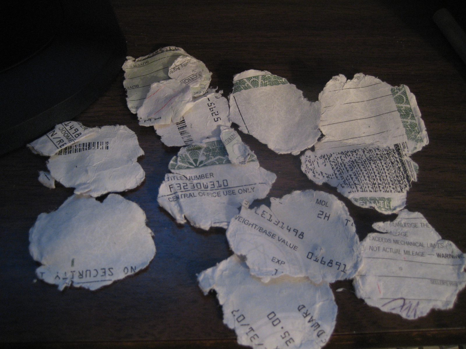 By the way, here is the title you say I "accidentally" let go through the wash. It was actually my g/f who washed it... Since I'm guessing you dont believe me. Why would I purposely put it through the wash, knowing he probably wont get me a new title? Think man.