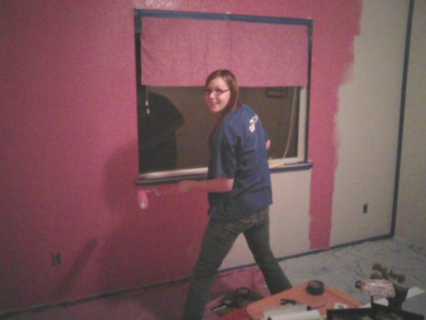 Dear lord Janelle is painting a wall bright pink...