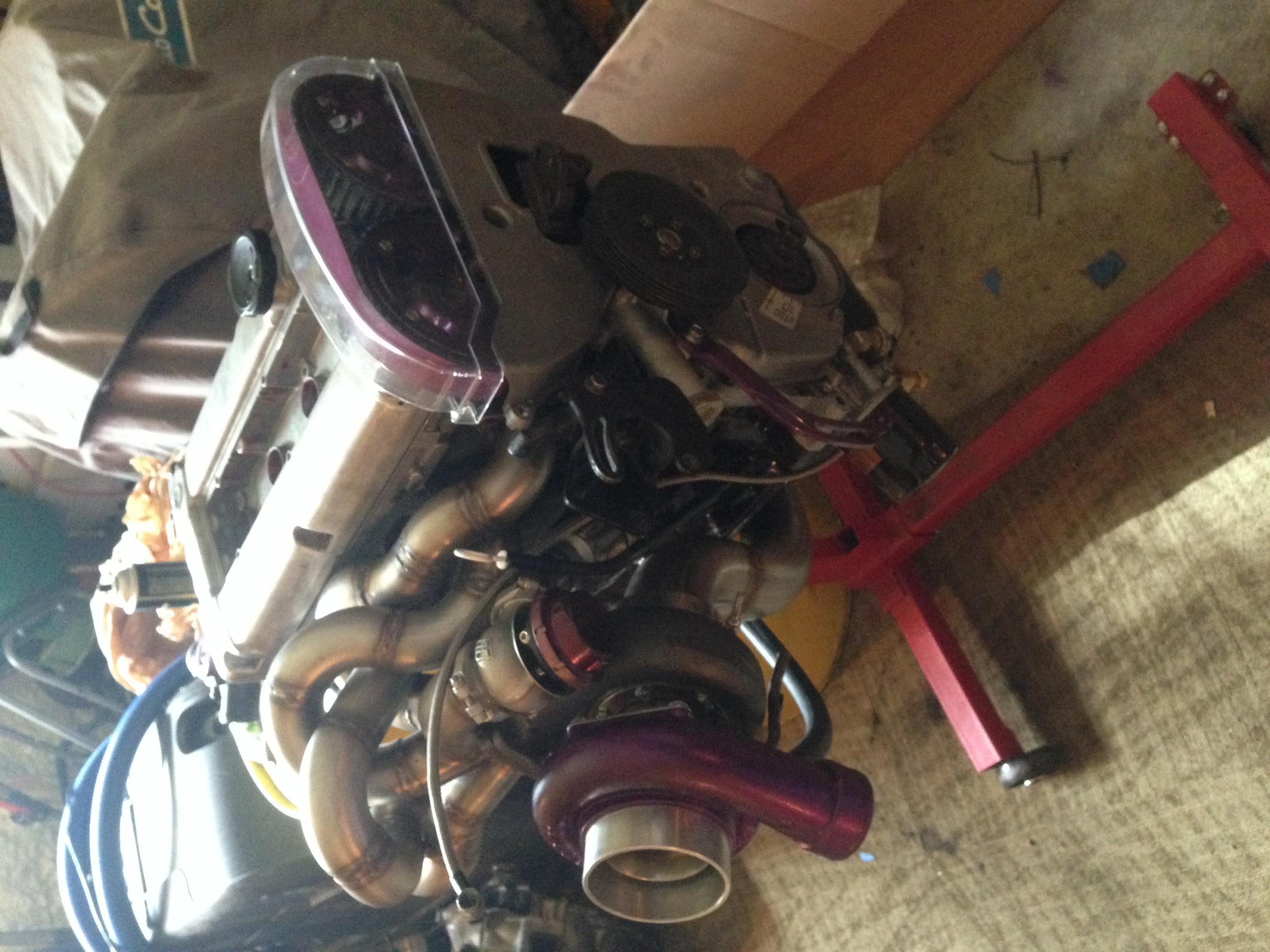 some updates, I have a new trans in route from canada. also I tore apart andre trans and lucky we did as we found a shim inside the center diff just waiting to be eaten up in there. Also his motor is now fully assembled and timed ready to drop in. sorry about the crappy lighting.