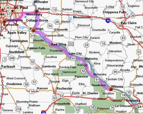 6. Turn SLIGHT RIGHT onto CEDAR ST/US-10 W/WI-35 W. Continue to follow WI-35 W. (go 1.33 miles)