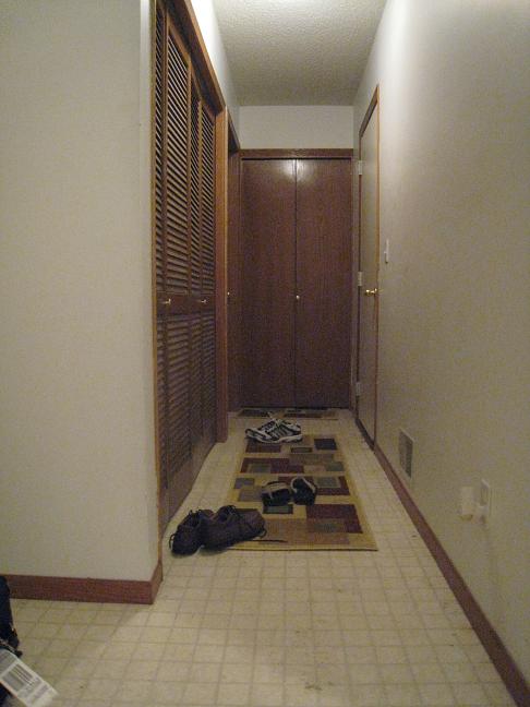 So I decided to get cracking on my main level. Already have the new appliances as I mentioned earlier (fridge, stove, microwave, dishwasher, clothes washer/dryer). So now the first step is to replace the kitchen flooring that is trash. I had a bunch of Home Depot gift cards, so I just went and bought a bunch of Light Oak Pergo flooring that will be going in the kitchen/bath/laundry. Also I am eliminating one cupbard spot. Reason for that is the way it's setup right now makes the dining room huge, and the TV/couch area small. Moving that end over one cupbard spot will help eliminate that. Then once the counter is modified, and the flooring is in, I'm going to get the whole room and the stairway coming up to the main floor re-carpeted.