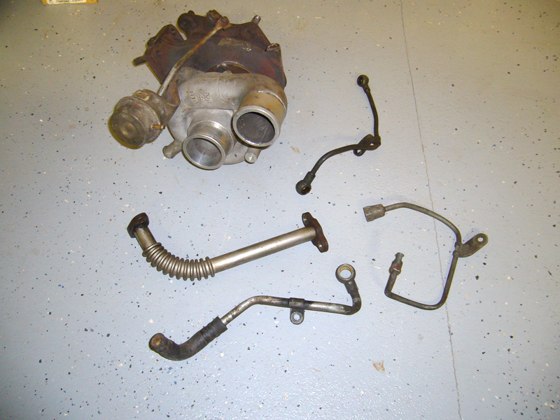 - T25, boosted ok, needs rebuild soon, some in and out shaft play. I believe it has all the lines except the water line and a couple of the exhaust housing bolts are still stuck, they broke while I was trying to remove. Sold as is - make me an offer
