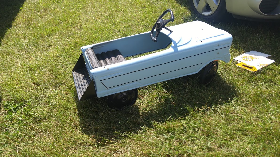 I am building a pedal car/wagon project to pull Norah around in. I found the startings of my project this past week at a swap meet. its a 1960's Murray V-front pedal car.