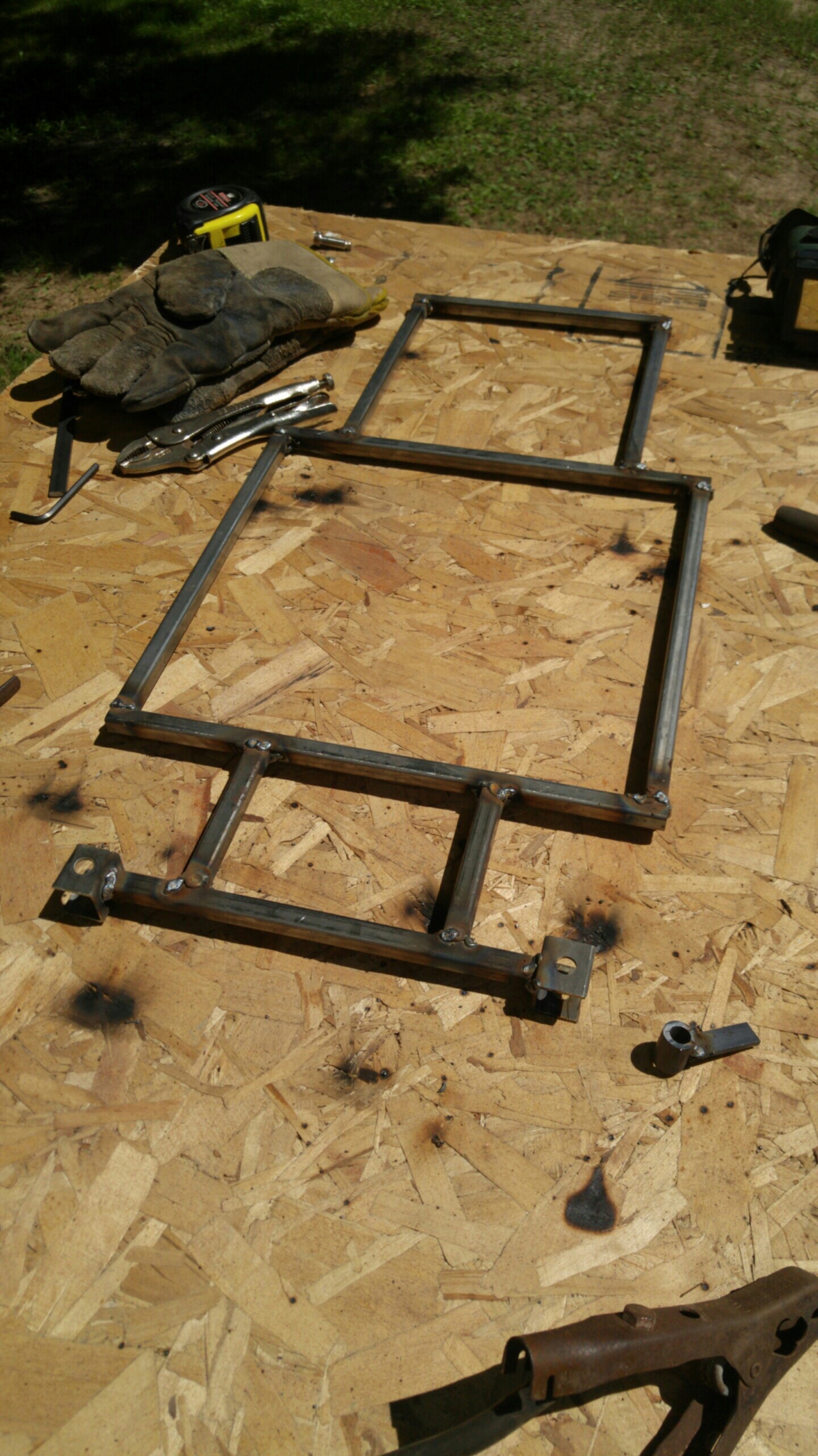 So I welded up the frame (not the best welder, but I don't do it often). Primed and painted the frame.