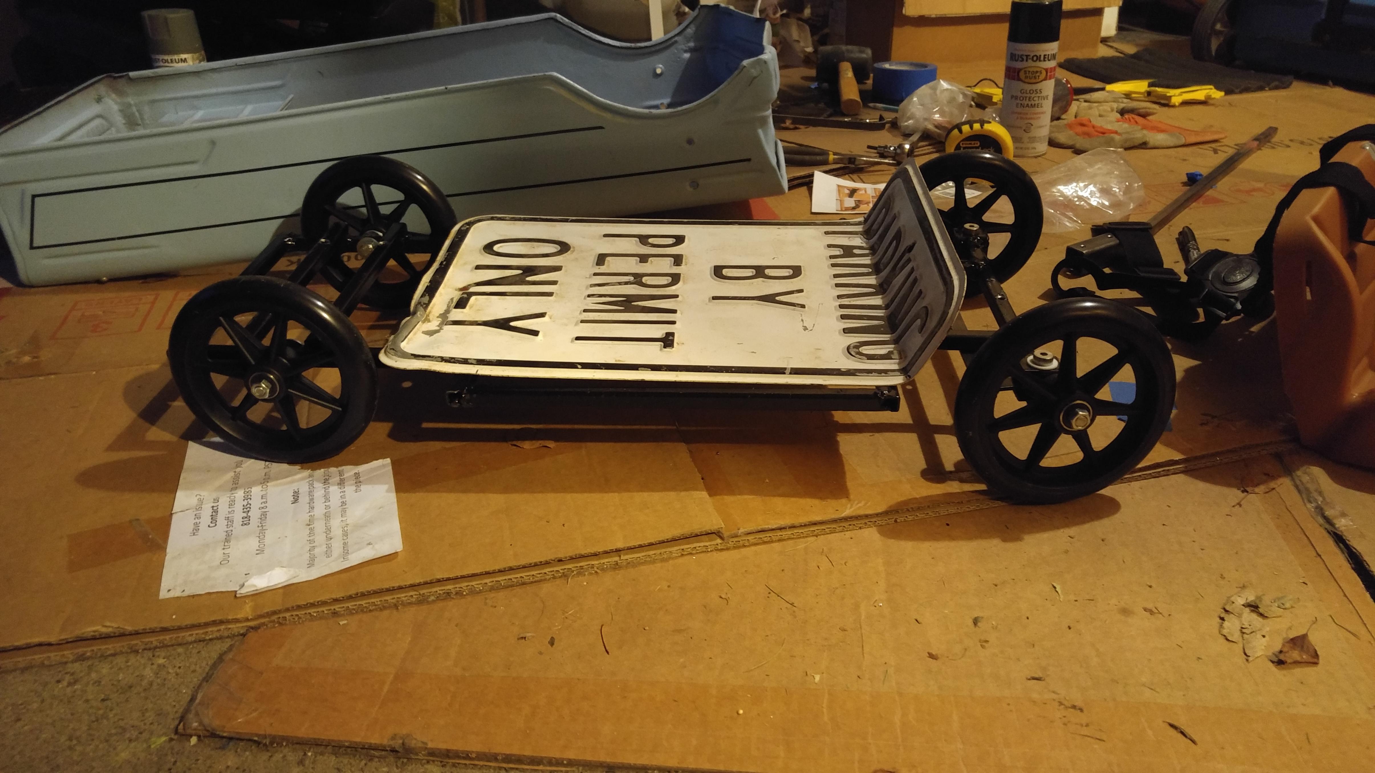 I am going to build a tube frame for it and steering assembly so that I can pull it around like a wagon. I'll pull the pedal parts out and save them for when she is bigger. It will hopefully turn out to be a cool little toy.