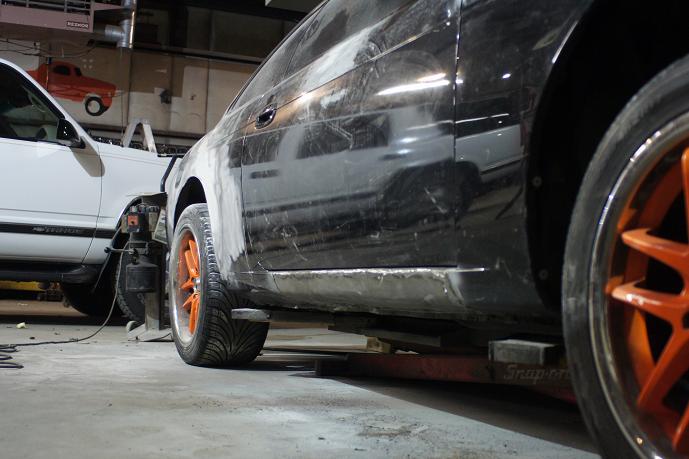 It's running good. But I have to finish the exhaust from the downpipe. And the rear differential bushings were out. But I replaced them already. And yeah. Those rims ARE getting switched/painted