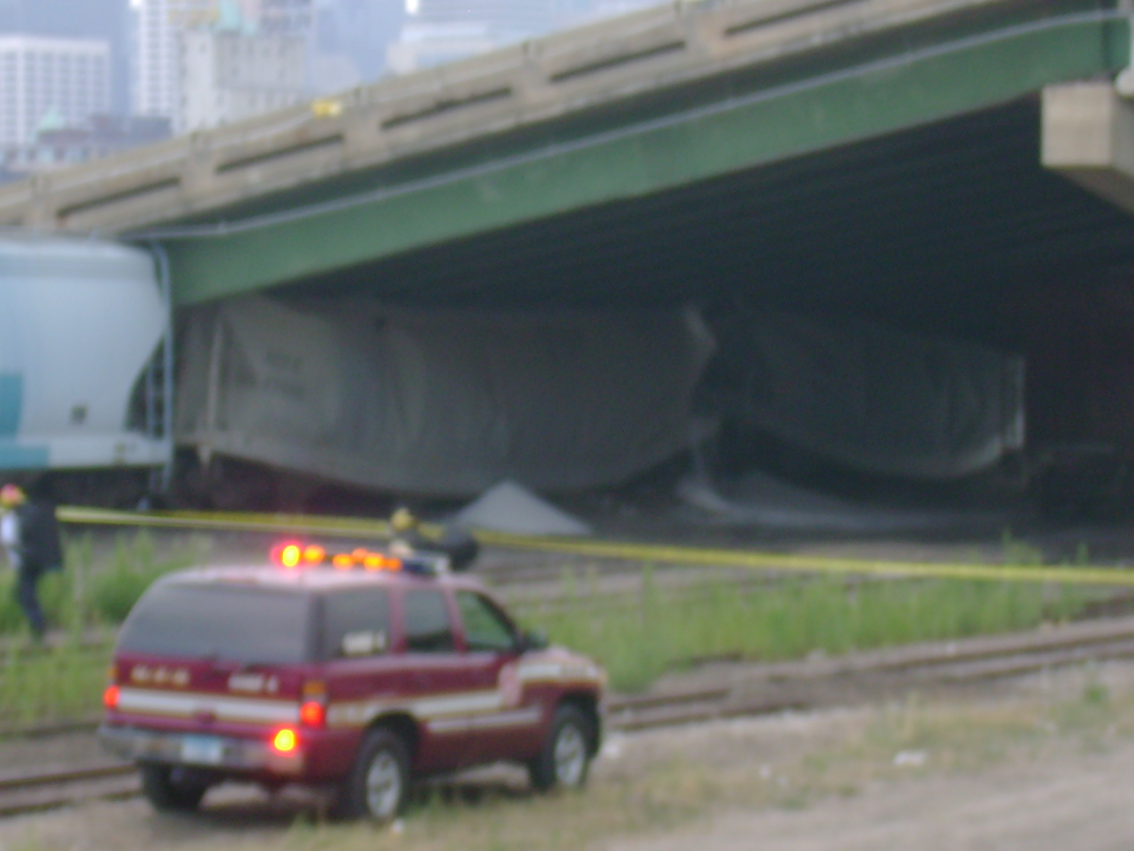 I can't beleive what has happened. Not only will it hold up traffic from the bridge but also river traffic as well as the train tracks are blocked as well.