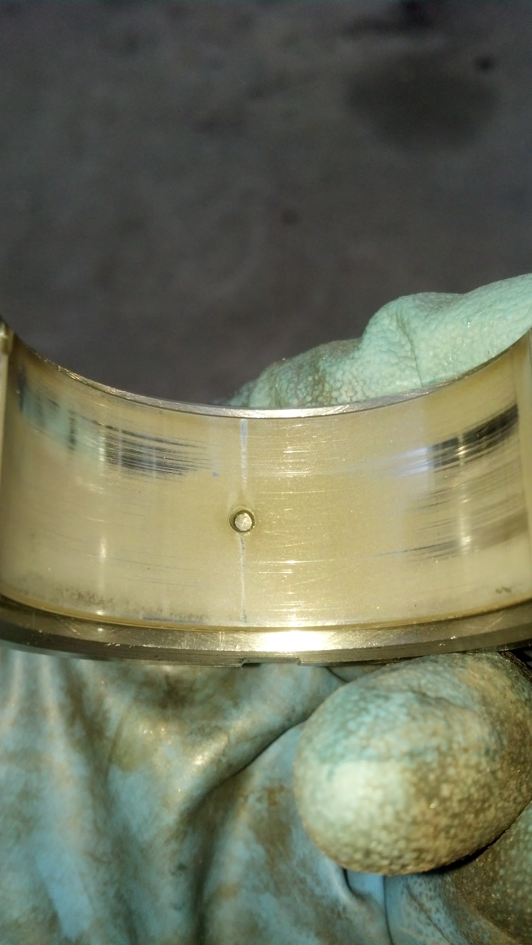 So I pulled the first main cap and the #1 rod bearing cap so they could look better and they could look worse. They feel smooth when you run your fingernail across them lightly. Realistically they are probably useable. I'm not 100 percent sure what I'm going to do with them yet. Anyways on to the pics. Feel free to share your opinions on what to do with the bearings.