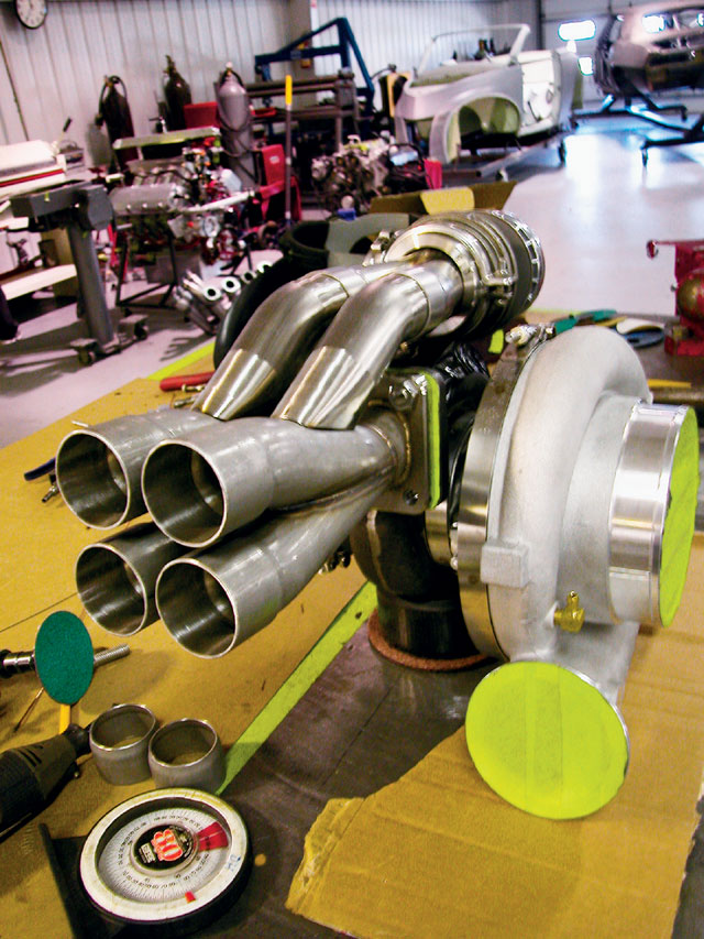 Spool isn't the problem, it's averting enough exhaust gases away from the turbo to keep the boost at a steady level. With a divided manifold and a single gate, the turbo is seeing less exhaust pressure from two of the runners than the other two. A single wastegate on a tubular manifold is usually plumbed into a merged collector, not a divided. This is similar to the way Buschur used to weld an HKS external on the number one runner of a stock manifold or the old cast T3 manifolds. I'm guessing this will cause some erratic boost control with this size turbo, but practice outweighs theory everytime. We'll see how it comes out. It shouldn't be that tough to add another wastegate later.