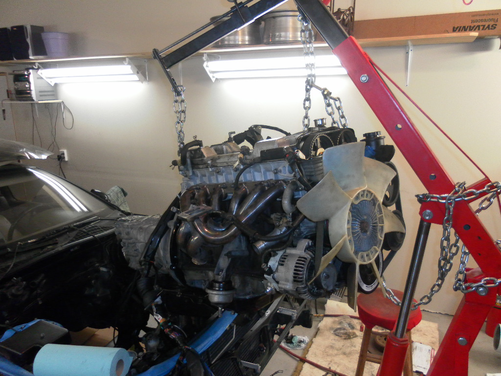 Motor is in. Man putting this pig in makes me realize how easy I had it with my 1G DSM, lol.