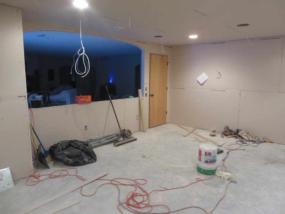 Looks like a fun project Brandon! There is a lot of different ways you could layout a theater in that space, but with the odd shape of that room, what you are doing makes a lot of sense. Especially if you want to have people in the rest of the downstairs to actually see the TV.