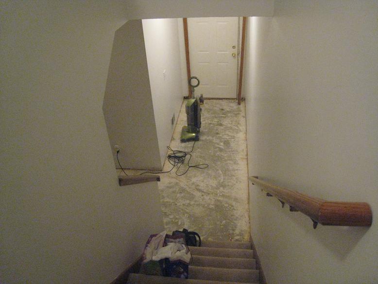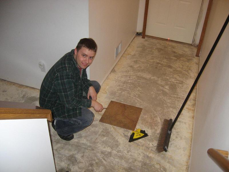 I just found 2 tiles that didn't stick too well so I pulled them up and will have to redo them. No biggie though. we cut a lot of pieces today to finish up the unfinished edges by the front door/stairs/hobbit room. So really what's left is the walkway by the garage door.